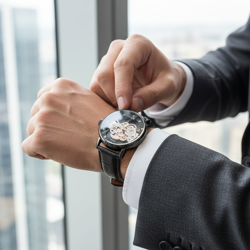 Skeleton-style dial revealing the watch’s inner mechanics